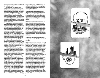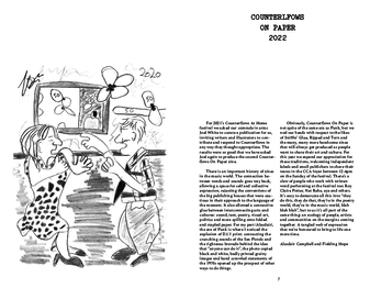 Counterflows On Paper is our second publication to accompany the festival. Last year in lockdown we decided to open up what the festival’s remit was and invited writers and illustrators to respond to the idea of Counterflows and the music that we commission and the artists who take part. Last year we posted these zines out around the world. The response was so positive that we had to continue this idea and create the second edition. Once again our wonderful colleague Joel White has edited and commissioned the writers and illustrators and Oliver Pitt has once again brought his sharp eyes and beautiful artwork to the layout and design of the publication. Our friends at Good Press printed the physical zine beautifully and of course this meant that the printed version was snapped up at the festival. So here for Counterflows At Home we wanted to ensure that if you couldn’t get to the festival at least you can share in the delights of the zine online.