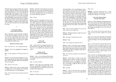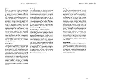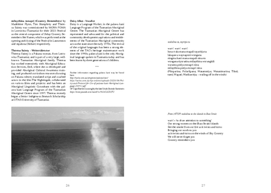 With special thanks to all the artists, Oliver Pitt for his design work and photography, Arnold De Boer, Lucy Wright, David Donaldson, Bidiya Noel Nannup, Lola McDowell and Richard McDowell for the contributions to the research, Oli Barrett for mastering the tracks, Good Press for the printing, Grace Wright for the proofreading and Simon Worthington for the furniture design and manufacturing.